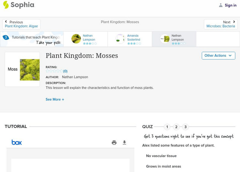 Sophia: Plant Kingdom: Mosses: Lesson 3