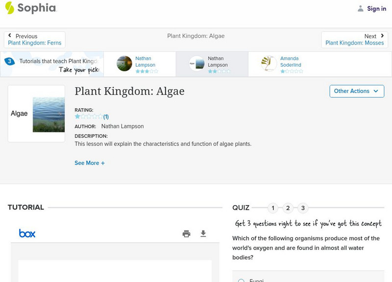 Sophia: Plant Kingdom: Algae: Lesson 3