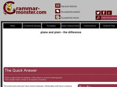 For this plane or plain worksheet, students choose the correct word to complete each sentence. Students choose plane or plain for 8 sentences.