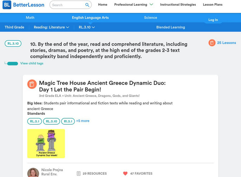 Links to 25 lessons that focus on skills within third grade reading standard RL.3.10.