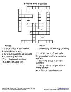 In this literature vocabulary crossword, students solve 15 clues and put them into a crossword, with no word bank. All words pertain to the book Buffalo Before Breakfast.
