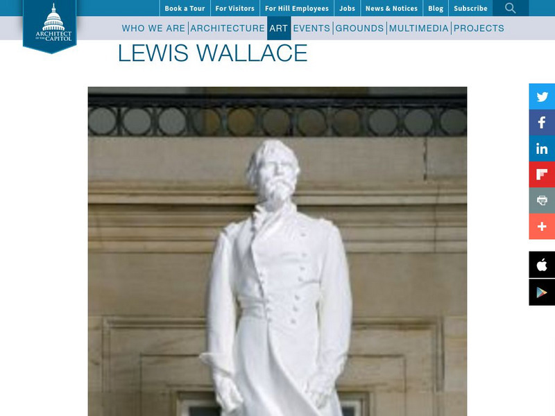 Brief biographical information about General Lew Wallace, accompanying his statue in the National Statuary Hall in the United States Capitol.