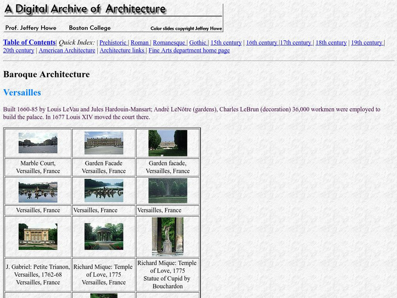This website contains a brief description of the architects and construction of Versailles. The site also provides a number of images, including images of the gardens and surrounding area.