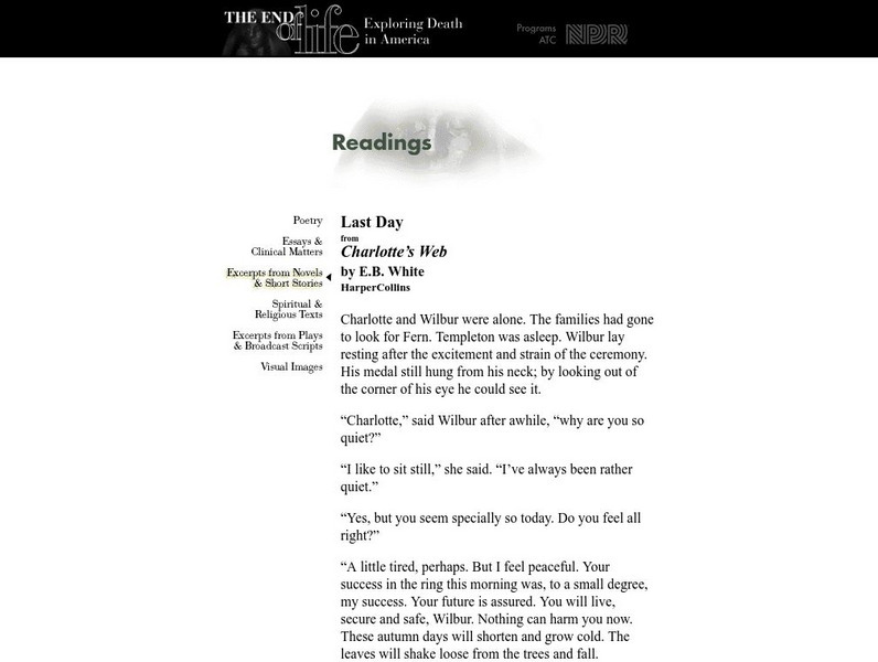 This site, from an National Public Radio program, The End of Life, provides the text of the last chapter of E.B. White's "Charlotte's Web."