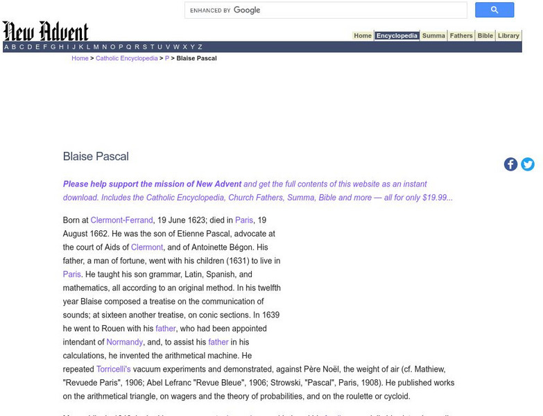 Excellent discussion of the life and work of this great scientist and mathematician. Describes his range of interests and notes his many contributions. Please note that ?The Catholic Encyclopedia? is a historic reference source and...