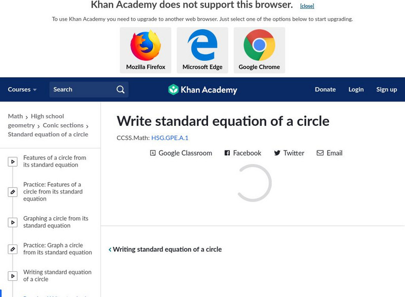 [Free Registration/Login may be required to access all resource tools.] In this lesson students find the standard equation of a circle. Students examine guided notes, review guided practice, watch instructional videos and attempt...