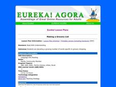 Young scholars explore vocabulary words related to groceries. Students examine words that can be used immediately, in every day life, particularly in the grocery store. They demonstrate the sounds of letters. Young scholars match labels...