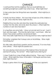 In this math worksheet, students explore probability and the chance that an event will occur. Students read 10 word problems and decide on an appropriate answer based on probability. Example: "My brother complains that is always rains on...