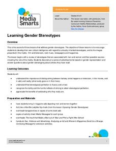 A lesson examines gender stereotypes and how they relate to career choices. Small groups look closely at job titles, identify gender bias, and brainstorm ways to add inclusivity. Individuals reflect on their interests and future career...