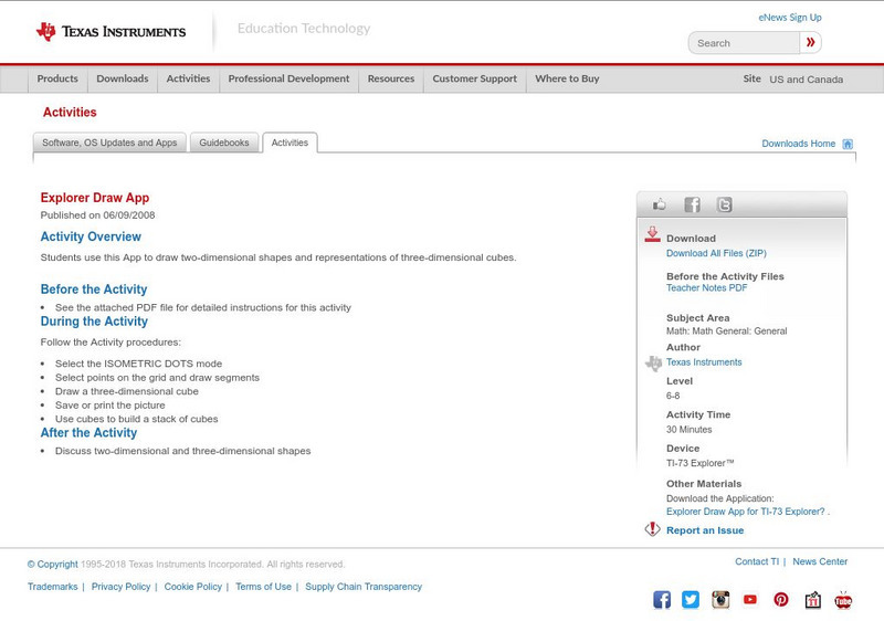Students use this App to draw two-dimensional shapes and representations of three-dimensional cubes. [Requires Adobe Reader.]