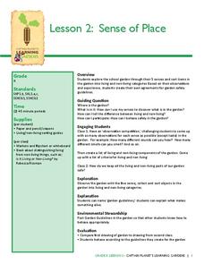 Explore the five senses with a kindergarten lesson on gardening. After taking a walk through the class garden, kids note what they see, hear, feel, taste, and smell, and then decide what is living in the garden versus what is not living....