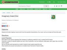 Students construct imaginary insects. In this insect lesson plan, students will discover the anatomy of their favorite insect and apply it to their own creation. Student will write a description of their model, and put the insect models...