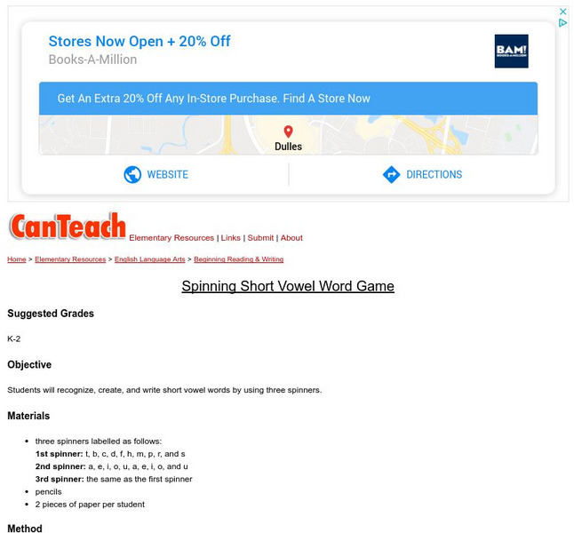 Fun game helps young readers develop their reading skills by playing an engaging game with spinners.
