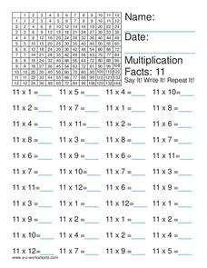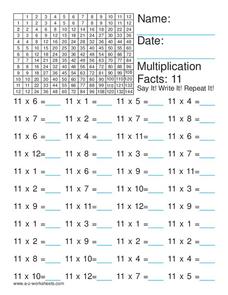 In this multiplication instructional activity, students solve 100 basic facts of 0 to 12. This may be used as a timed drill of multiplication facts to 144.