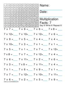 In this multiplication skills worksheet, learners solve 40 problems in an effort to retain their multiplication facts. An multiplication table is included.
