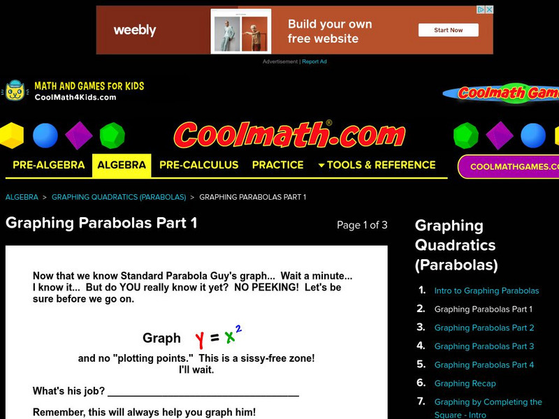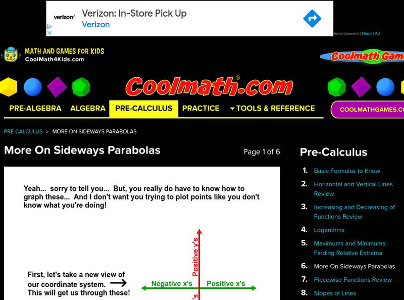 This CoolMath resource provides extended learning on the topic of "sideways parabolas" and how to graph them.