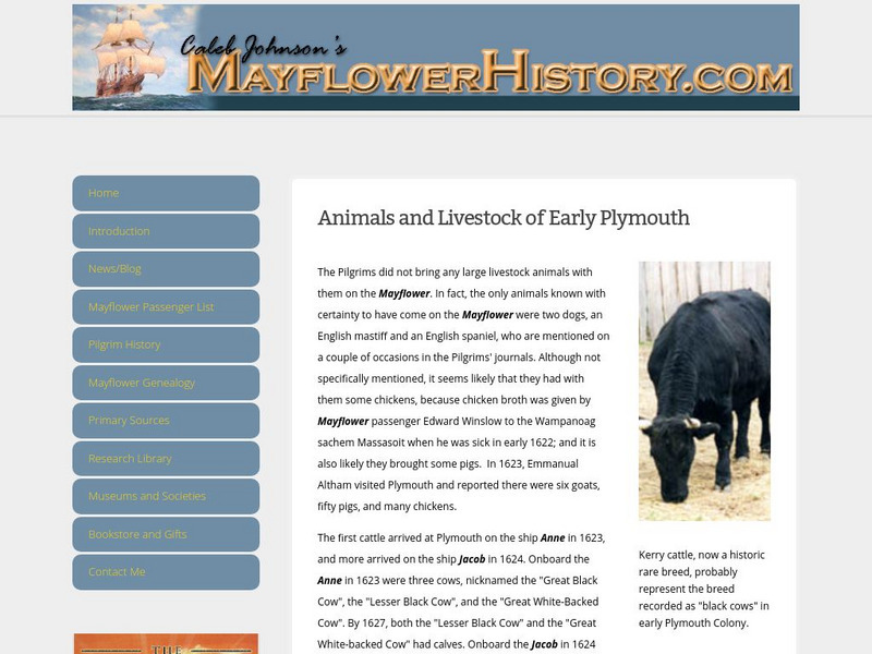 Mayflower history.com: Animals and Livestock of Early Plymouth
