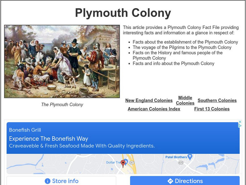 Ducksters: Colonial America the Pilgrims and Plymouth Colony