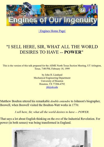 University of Houston: Engines of Our Ingenuity: History of the Steam Engine