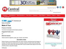 Middle schoolers examine the deceptive ads for tobacco products. They choose an ad and draws his or her own version of the ad, using facts about the dangers of smoking. Students may pardody the ad. They glue their ad and the actual ad...