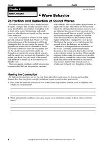 In this wave behavior activity, students will read about how sound waves are formed and how air and water temperature affects sound waves travel. Then students will complete 2 short answer questions based on the information they read.