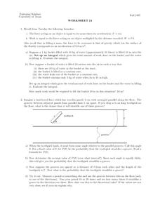 In this math worksheet, students find how a 1 kg bucket filled with 10 kg of water is lifted 10 m into the air. They set up an integral which gives the total amount of work done on the bucket and the water used for lifting it.