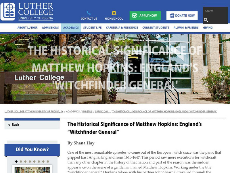 The Historical Significance of Matthew Hopkins: England's "Witchfinder General"