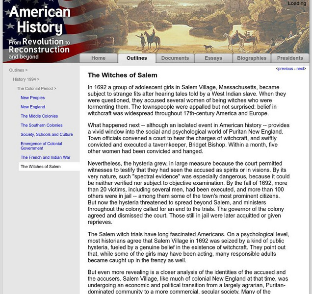 This section of the web page has a collection of resources on early European witch hunts as well as some of the Salem witch trials.