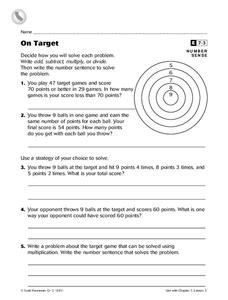 Emergent mathematicians solve single-digit multiplication word problems on this worksheet. Simple, but colorful graphics help keep youngsters' attention as they work. Keep this worksheet in your curriculum collection to use as an...