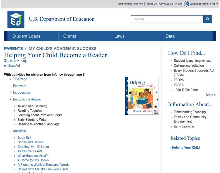 U.s. Department of Education: Helping Your Child Become a Reader