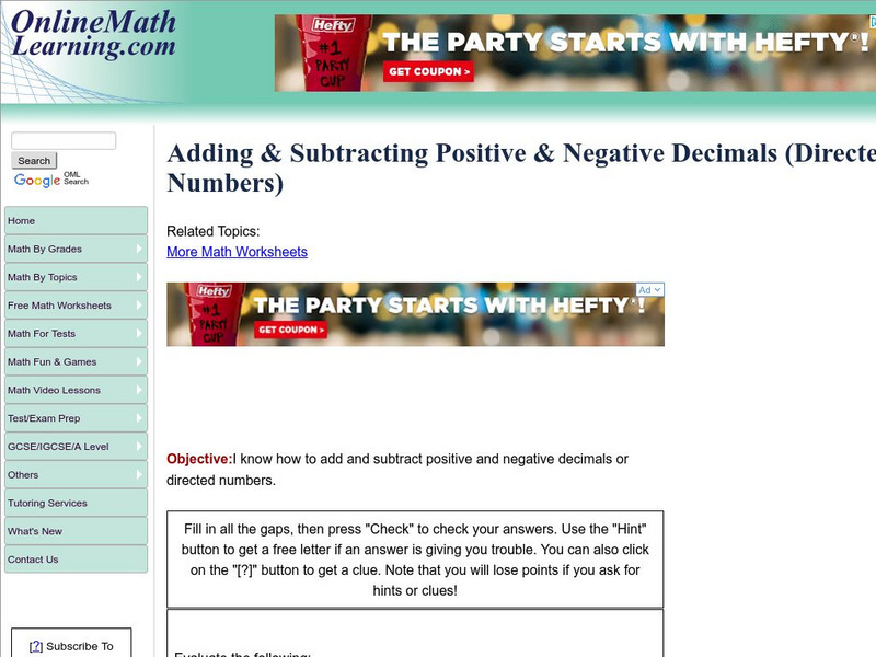 Online Math Learning: Adding & Subtracting Positive & Negative Decimals