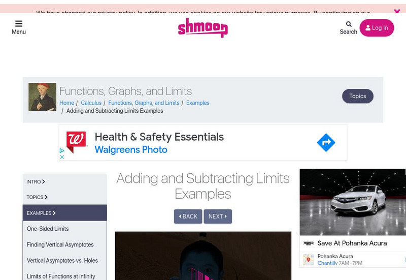 Shmoop: Adding and Subtracting Limits Examples