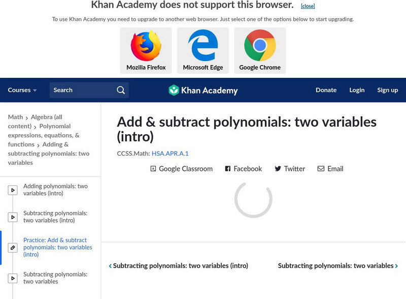 Khan Academy: Add & Subtract Polynomials: Two Variables (Intro)