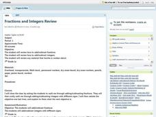 Investigate the concepts of fractions and integers in order to review for a future assessment. The teacher reviews the major concepts with the class and provides help throughout the lesson as needed. Math middle schoolers work together...