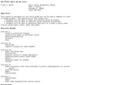 Third graders study plants. In this biology lesson plan, 3rd graders label and identify parts of plants, identify spices obtained from plants, and determine what part of a plant a spice comes from by using taste, touch, smell and sight.