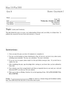 In this limit worksheet, student evaluate functions and determine the continuous limits. This one-page worksheet contains three multi-step problems.