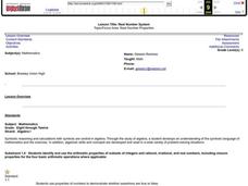 Ninth graders discuss the real number system and its' properties. In this algebra lesson, 9th graders discuss rational, irrational, closure, real numbers and the distributive property of algebra. They solve problems using these...