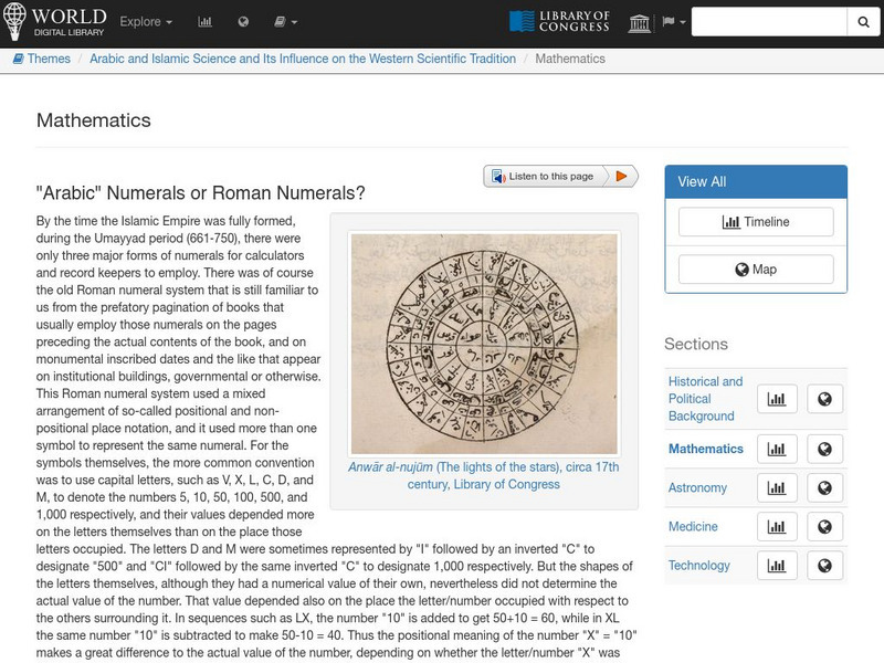 World Digital Library: Mathematics: "Arabic" Numerals or Roman Numerals?