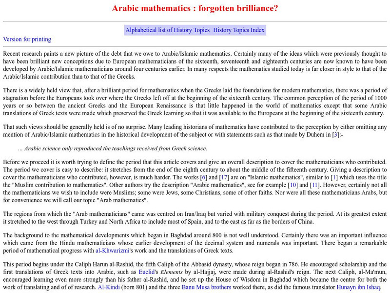University of St. Andrews: Arabic Mathematics: Forgotten Brilliance?