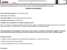 Students engage in a lesson that is about the concept of graphing using the coordinate plane. They view a PowerPoint presentation and practice solving different problems. Students discuss vocabulary words with the help of the PowerPoint.