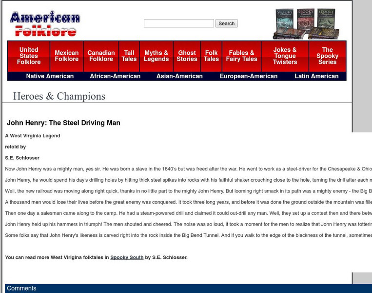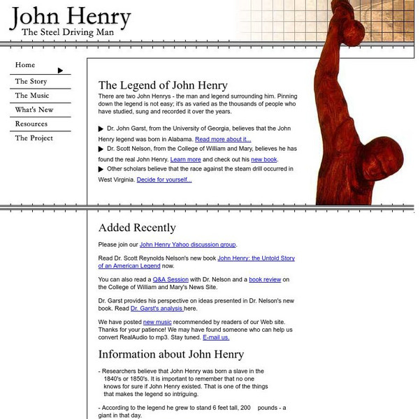 This ibiblio.org site deeply explores the truth behind the legend of John Henry. Content includes interviews with numerous scholars who take a look at how this legend may have been created. Scholars also analyze historical facts versus...