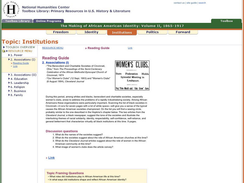 National Humanities Center: Toolbox Library: Associations (I), Making of African American Identity: V. 2