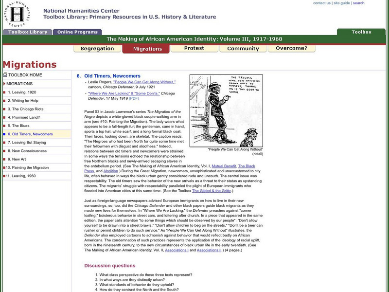 National Humanities Center: Toolbox Library: Making of African American Identity: Old Timers, Newcomers