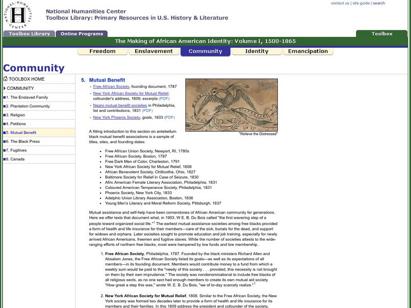 National Humanities Center: Toolbox Library: Mutual Benefit, Making of African American Identity: V. 1
