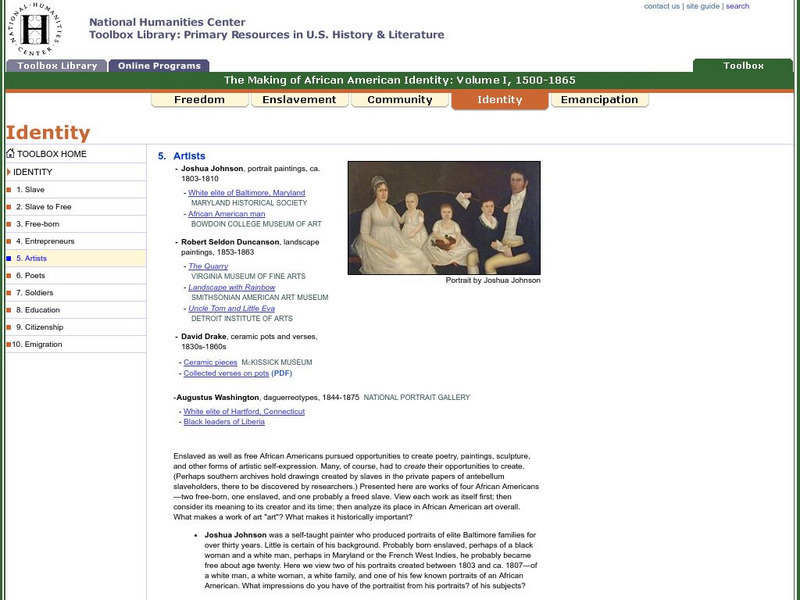 National Humanities Center: Toolbox Library: Artists, Making of African American Identity: V. 1