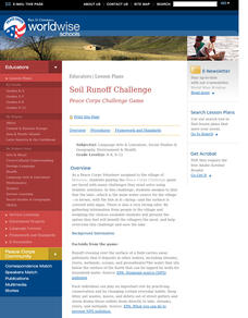 Students find ways to decrease soil runoff for an African Village as a part of a Peace Corps project. In this soil runoff lesson, students play a soil runoff challenge online. Students complete online activities and view a slide show to...