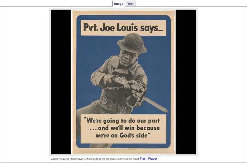 View a poster from the U.S. Office of Facts and Figures of boxer Joe Louis urging African-Americans to do their part for the war. The text explains the impact of the design of the poster and Louis' part in World War II.