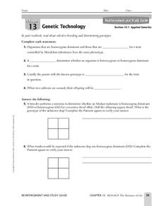 In this genetic worksheet, students will complete 4 fill in the blank questions about selective breeding and determining genotypes. Then students will use a Punnett square to determine the genotype for two different breeding situations.