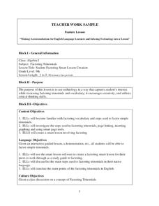 Learners factor trinomials using specific steps. In this algebra lesson, students factor polynomials following the steps on a smart lesson. They review important vocabulary to help with solving the problems.