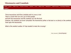 In this missionaries and cannibals learning exercise, students read a word problem and use logic and deductive reasoning to solve the problem. This one-page learning exercise contains one problem. Answers are provided at the...